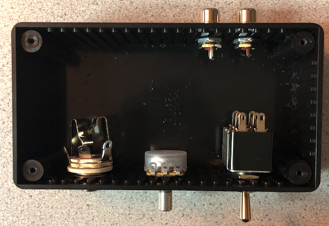Note: a plastic enclosure is recommended so that the outer contacts on the RCA cables do not short via a metal/conductive enclosure. You can probably get away with a metal enclosure as long as you make sure to insulate your RCA jacks from one another.